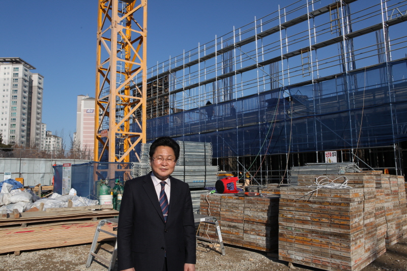 Q. 지역사회를 위한 계획이 있다면 ? 별내에 복지넷이라고 있는데. 소외계층을 돕는 일을 5년여 위원으로 참여하며 일하고 있다. 좋은 일하는 20여명 위원들과 함께 하는데, 교회가 앞장서서 장학사업도 하고. 또한 다문화가정을 위한 복지도 마련하려고 한다. 현재 우리사회에서 동거중이지만 결혼은 하지않은 사람들을 위해 무료로 예식홀로 활용하게 하고 1층에 식당도 있으니 식사도 제공하고 또 제가 직접 주례를 봐주려고 한다. 제가 음악으로 좋아하기도 하지만 음악을 배우고 싶은 사람들을 위해 교회에서 음악교육도 실비만 받는등 해서 진행하려고 한다. 이처럼 지역사회를 위해 교회가 앞장서서 노력한다면 더불어 사는 사회를 함께 이룩할 수 있을 것이라고 믿는다. Q. 중층을 만들지않고 1층만 진행한 이유는? 중층을 하려고 했으나 1층과 중층이 전혀 다른 분위기로 흘러가고 성도들간의 교류도 잘되지않아 따로 만들지 않았다. 그래서 1층을 스탠드식 부채꼴로 하다보니 보기보다 많은 성도들이 올 수 있다. 양옆으로 문을 내서 출입이 가능할 수 있도록 진행하였다. 우리교회는 5월에 공사를 마치고 1600석에 자모실 200석 총 1800석규모로 오는 10월에 입당할 예정이다.