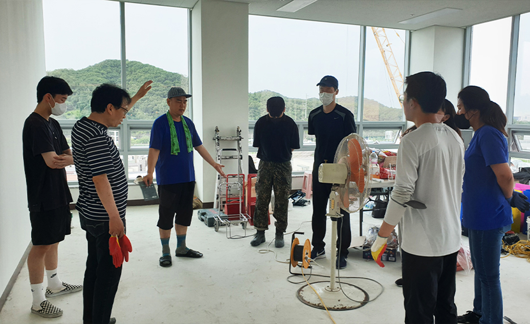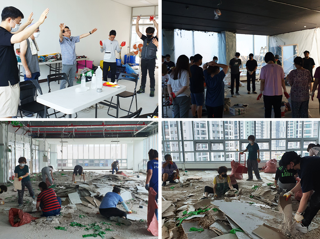 몇억이 드는 인테리어는 또 어떻게 할지 기도하며 고민하던 때에 남자 성도 2명이 인테리어에 헌신하겠다면서 직장을 그만두었다. 이미 2016년 서울 양천구 신정동에서 성도들은 다함께 힘을 합쳐서 교회를 인테리어 한 경험이 있었다. 본당 100평, 2층 교육관, 5층 식당을 전문가 하나 없이 오롯이 성도들의 힘으로 공사를 시작하고 마쳤다. 낮에는 아이 엄마들이 아이들을 어린이집과 학교에 보낸 후 성전에 모여서 공사를 했고, 밤에는 직장에서 퇴근하고 돌아온 성도들이 함께 모여서 새벽까지 공사를 진행했다. 설계도면, 디자인, 방음벽, 도장, 바닥, 타일, 용접, 퍼티 작업 등등 모든 인테리어를 성도들이 직접 공부하고 배워가면서 완성했다. 김 목사는 이번에도 하나님은 결국 우리 힘으로 하기 원하신다는 사인으로 받았고, 교회는 또 한 번 공사를 시작했다. 몇몇 리더들이 공간을 나누고 담당자가 되어 모든 것을 책임지는 형식으로 진행했다. 전문가를 고용할 수밖에 없는 때를 제외하고는 이번에도 모두 다 성도들의 진행으로 인테리어가 이루어졌다. " 특별한 재능이나 손재주가 있는 성도들만 공사에 참여하지 않았어요. 누구나 시간이 되고, 함께 하고 싶은 마음만 있으면 하루라도, 며칠이라도 시간 날 때마다 성전에 와서 일할 수 있도록 했습니다. 청소를 할 사람도 필요했고, 심부름을 할 수도 있었습니다. 중요한 건 모두가 한마음이 되어서 성전을 함께 건축 한다는 것이지 재능있는 몇 사람이 고생해서 건축하는 게 아니거든요. 남녀노소, 직업, 직분 따질 것 없이 모두가 와서 청소하고 공사하면서 서로 배워가고 땀흘리며 웃고 떠들고 즐겁게 참여한 모든 작업은 성도들에게 영원한 추억이 되었습니다. " 성전을 이전하면서 과감하게 김 목사는 서울 성전의 예배를 전부 다 옮겨왔다. 애초의 계획은 두 곳에서 나눠서 예배를 드리는 것이었다. 그러나 하나님은 그것을 허락하지 않으셨고 오롯이 한곳에 집중하게 하셨다. 가장 큰 걸림은 이제 성도들의 이사였다. 이사를 결정해야 하는 상황이 예상보다 빠르게 닥친 것이다.