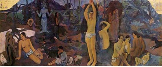 고갱은 자신의 그림을 종합주의라고 불렀다. 그 당시 화단의 주류였던 인상주의 화가들의 작업인 가시적인 사물들을 그리는 것이 아니라 상상과 자신의 경험을 종합하여 내면에서 울려오는 감추어진 세계를 그렸다. 그는 자신만의 색깔로 내면의 원초적인 깨달음을 그리고자 했던 고독한 예언자였다. 그의 예언은 예술작품 속에선 힘을 발휘하여 20세기 화단에 지대한 영향을 주었다. 그러나 정작 자신의 삶은 가난과 절망과 질병으로 고통 속에 있었다. 그는 자살을 결심하고는 죽기 전에 마지막 유작을 남기기로 작정했다. 그 결실이 바로 <우리는 어디서 왔으며 우리는 무엇이며 어디로 가는가?>라는 작품이다. 3미터도 넘는 대형 작품으로 유년기에서 노년기까지 인생의 각 단계별로 달라지는 인간성과 존재의 의미에 대한 그림이었다.