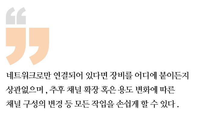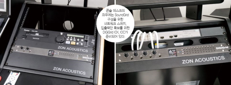 하지만 무엇보다 주목할만한 것은 확장카드를 통해 다양한 프로토콜을 지원한다는 점이다. 허브에 장착되는 확장슬롯은 총 4개까지 꽂을 수 있으며 현재 ADAT, AES/EBU(DB25), Dante, Analog(DB25) 등 다양한 포맷을 지원하며 최근에는 Waves SoundGrid 포맷까지 준비해 가장 손쉽고 강력하게 퍼스널 모니터링 시스템을 구축할 수 있는 장비로 떠오르고 있다. 그리고 자칫 드라이해질 수 있는 모니터링 사운드를 보강하기 위해 앰비언스 마이크를 설치했다. 이 시스템에서 가장 중요한 점은 네트워크로만 연결되어 있다면 장비를 어디에 붙이든지 상관없다는 것이다. 실제로 최근 교회 관계자의 전언에 따르면 장비의 원활한 관리 및 작동 모니터링을 위해 SoundGrid 서버를 방송실로 옮겼으며, 어려운 작업 없이 단순히 장비를 옮기고 네트워크 스위치에 랜케이블을 꽂는 것만으로 작업이 완료되었다고 한다. 뿐만 아니라 추후 채널 확장 혹은 용도 변화에 따른 채널 구성의 변경 등 모든 작업을 손쉽게 할 수 있으니 기술의 발전이 놀라울 따름이다.