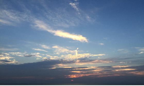 쫓아오던 햇빛인데, 지금 교회당 꼭대기 십자가에 걸리었습니다.