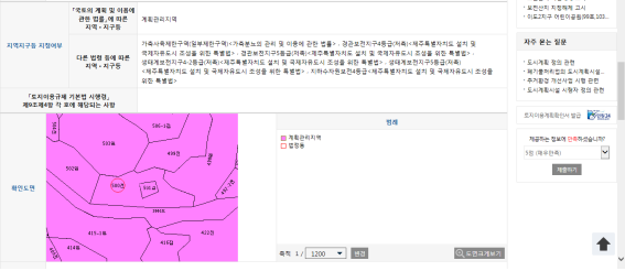 주소창에 소유한 토지의 주소와 번지를 치면 그 토지에 대한 기본적인 정보가 나온다. 제일 위에 나오는 것이 토지의 용도지역이다.