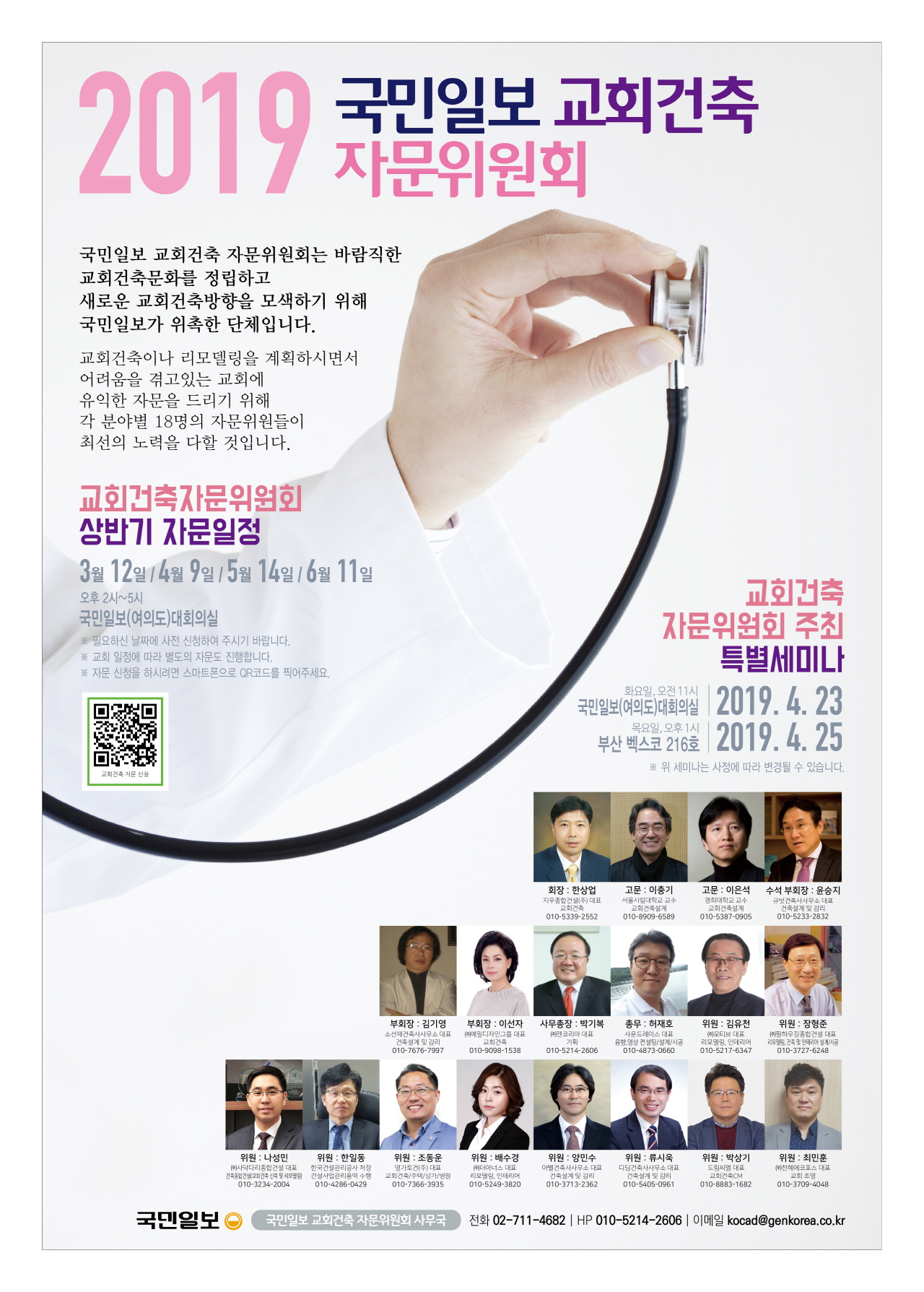 교회건축 각 최고의 전문가들의 강의를 들을 수 있는 국민일보 교회건축자문위원 특별 세미나가 2019년도 상반기에 개최됩니다.