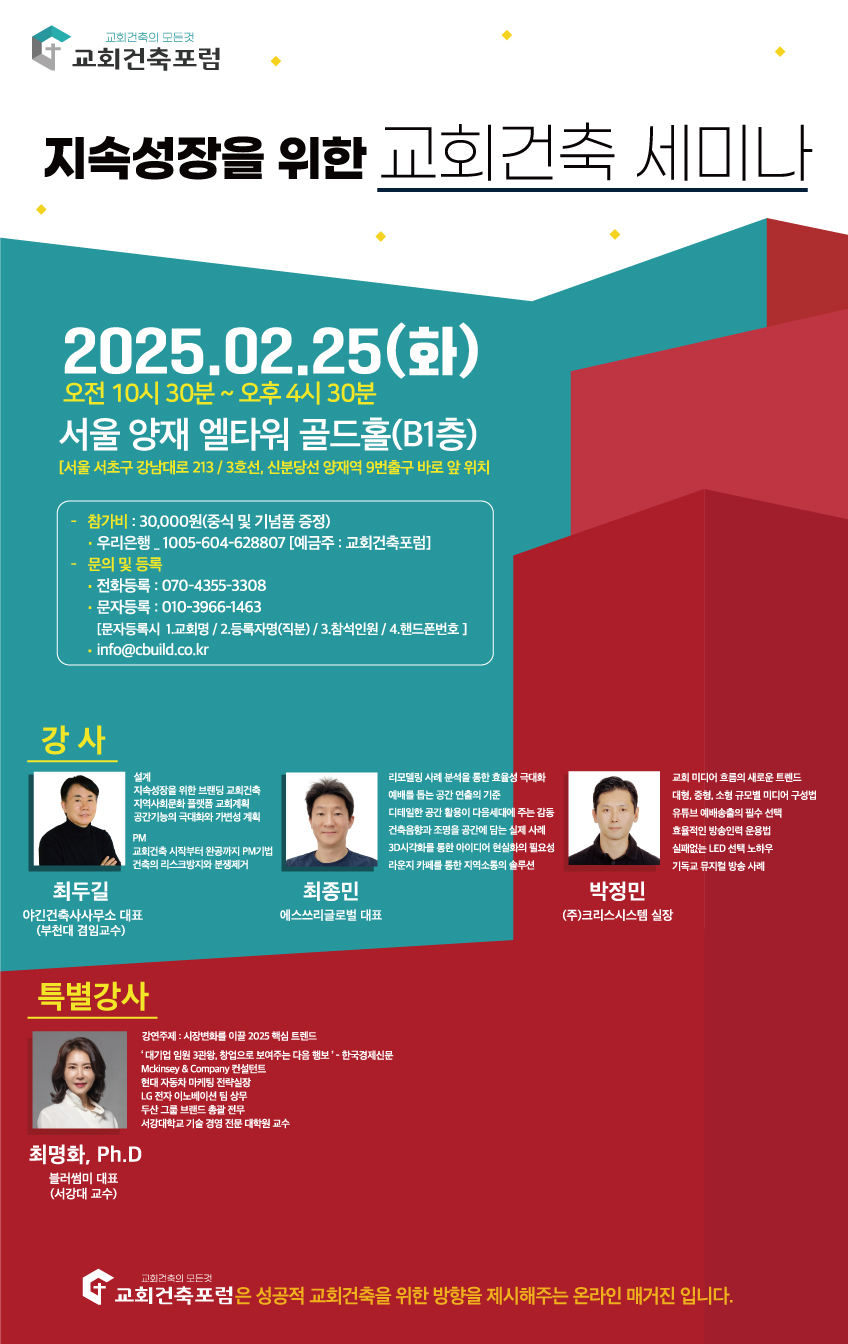 | 2025 상반기 교회건축세미나 안내 - 지속성장을 위한 교회건축세미나 | |