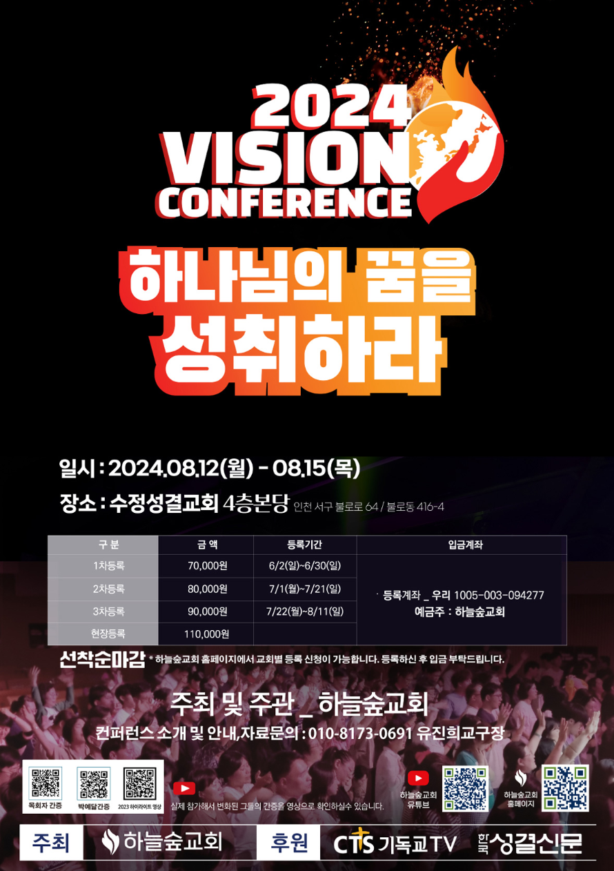 하늘숲교회가 주최하는 2024 비전컨퍼런스 <하나님의 꿈을 성취하라> 안내입니다.