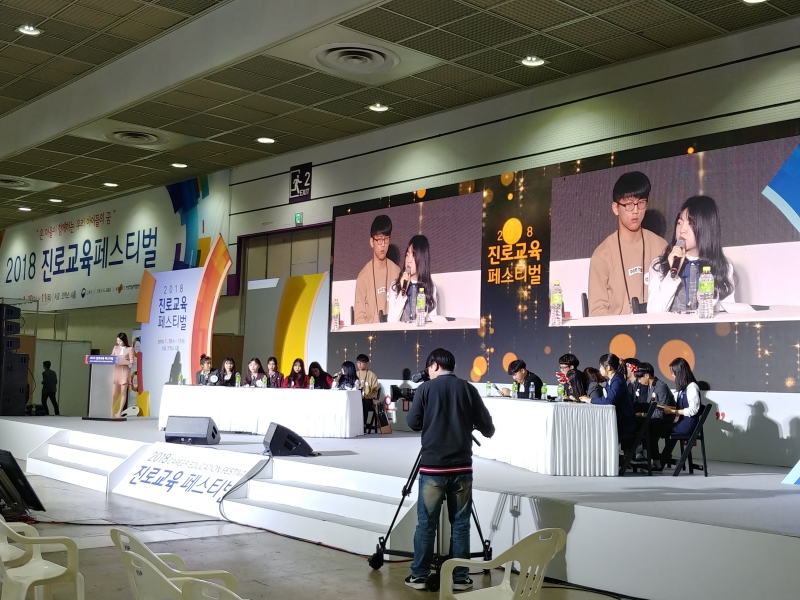2018 진로교육페스티벌이 1월 10일부터 11일까지 서울 삼성동 코엑스 1층 A홀에서 개최되었다. ‘온 마을이 함께하는 우리 아이들의 꿈’이라는 주제로 교육부와 한국직업능력개발원이 주최하였다. 이번 행사는 중고등학교와 대학교 진로 프로그램과 전국의 진로 센터에서 진행하는 우수 진로 프로그램을 선보였다. 또한 진로 교육 관계자들이 대거 참가하여 학교 안팎에서 실행되는 진로 프로그램과 우수사례를 공유한 자리로 만들어졌다. 모처럼 진로교육 전문가들이 함께 모여 소통하는 시간으로 마련되었으며, 현장은 주제관을 4 개로 나누었다.