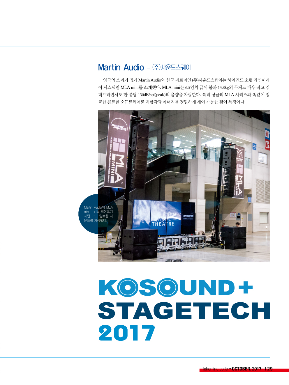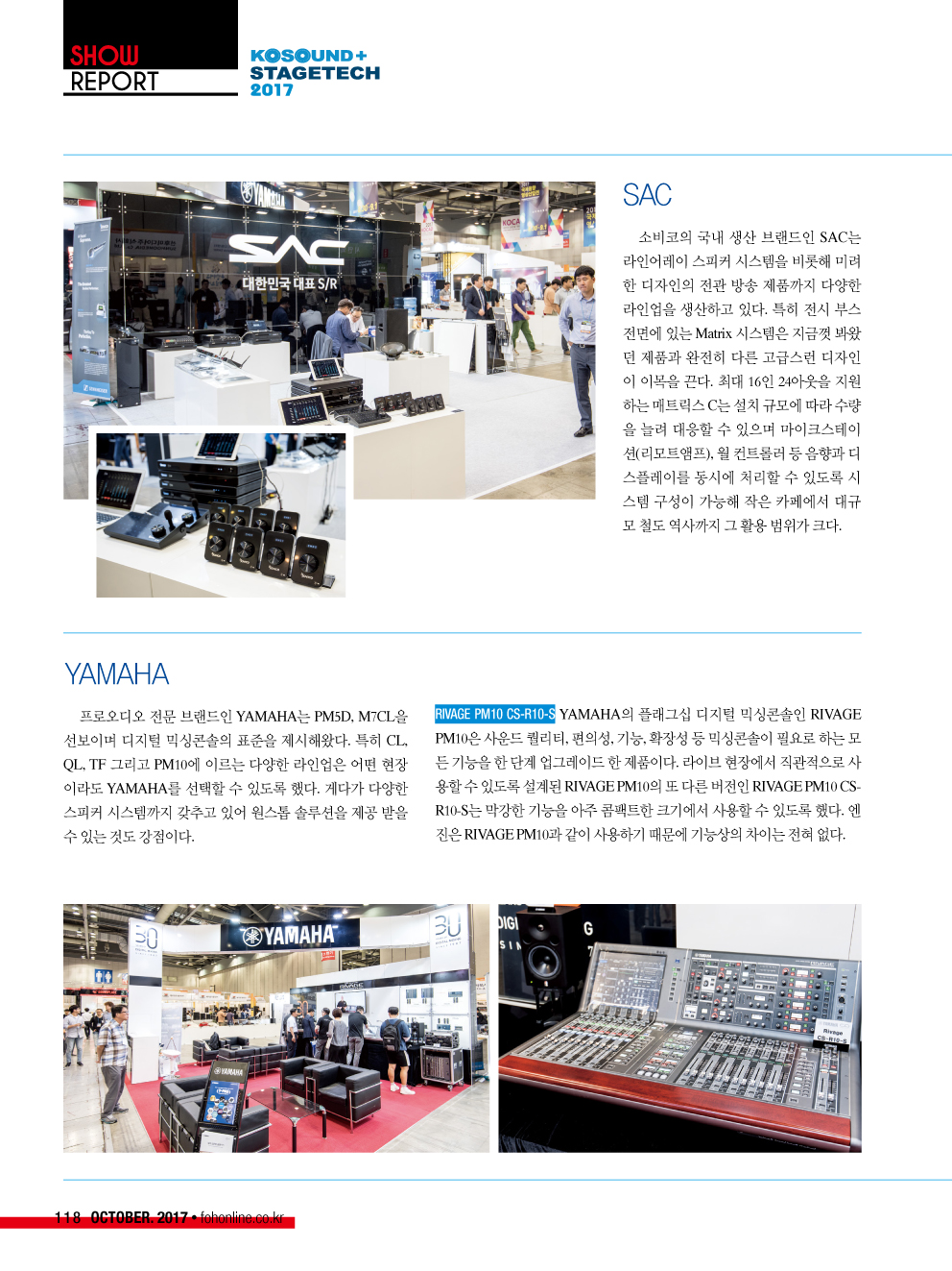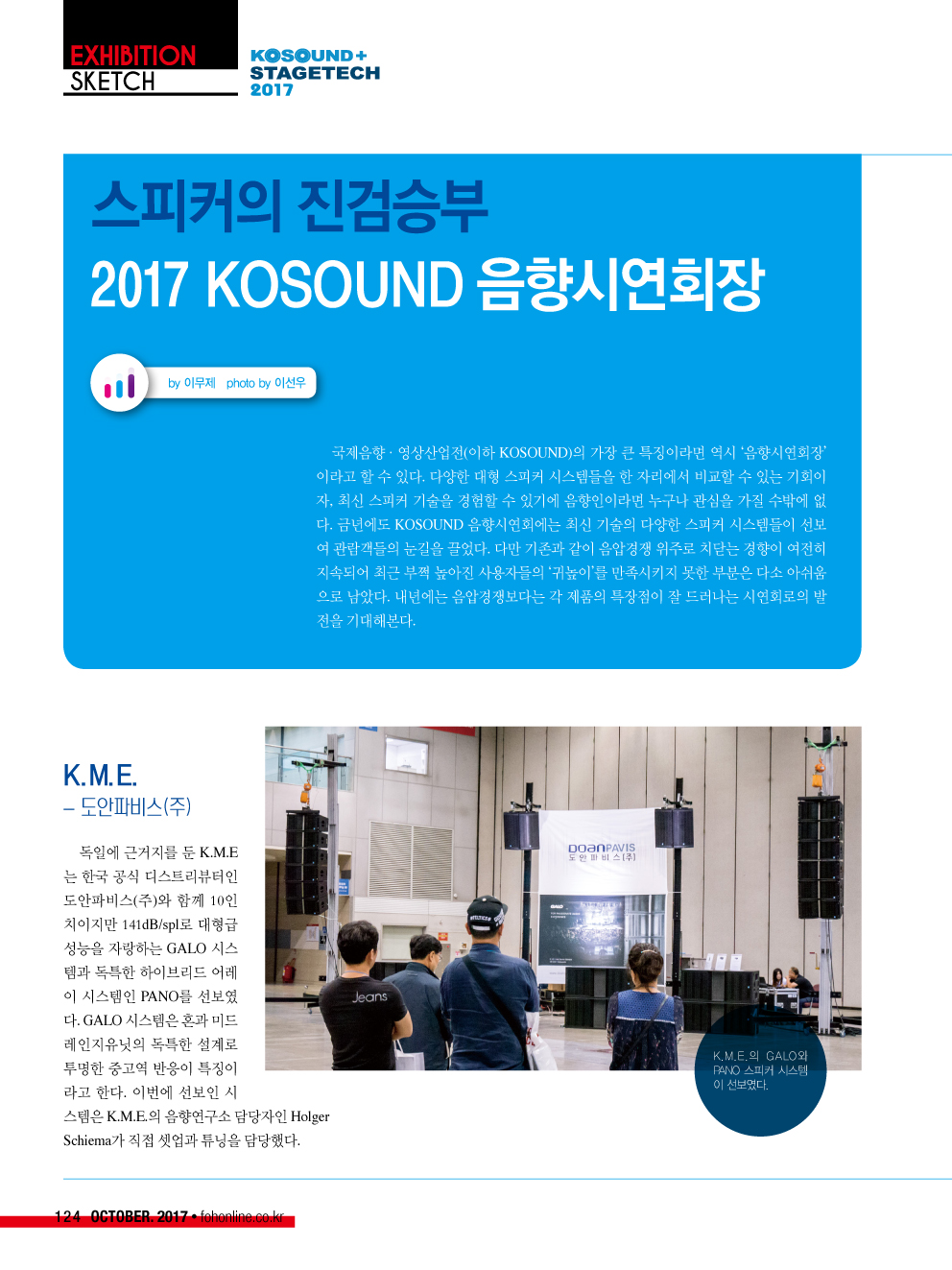 매년 11월이면 일산으로 사람들이 몰린다. 정확히 말하자면 음향과 관련된 사람들이 모여든다. 그런데 올해는 커다란 변동사항이 생겼다. 개최 시기가 8월로 앞당겨진 것. 1년이라는 커다란 시간의 수레바퀴 속에 매년 반복되던 전시회 일정이 바뀐다는 것은 홍보가 뒷받침되지 않으면 자칫 낭패로 이어질 수 있다. 때문에 몇 달 전부터 (사)무대음향협회에 소속된 인원들이 소셜네트워크를 비롯한 다양한 매체에 지속적으로 알려왔다. 더위의 끝자락인 8월 30일부터 9월 1일까지 3일간 킨텍스 8홀에서 열린 전시회의 이곳저곳을 소개한다.