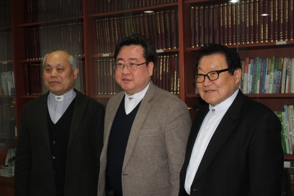 총장 백성혁 목사 "총회와 신학교 살리는 시발점 될 것" ▲(왼쪽부터) 교육위원장 전혁진 목사, 총장 백성혁 목사, 발전위원장 이관식 목사. ⓒ학교 제공