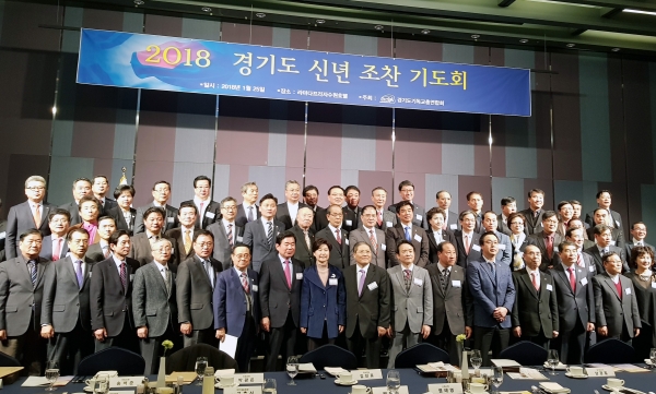 경기도기독교총연합회(대표회장 장향희 목사)가 25일 아침 라마다프라자 수원호텔에서 경기도 내 31개 시·군 기독교 단체 대표 및 관계자들, 기독 정치인 등 각계 지도자들이 모인 가운데 신년 조찬기도회를 개최했다.