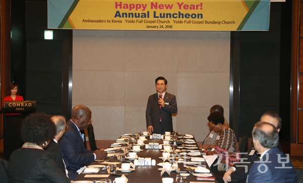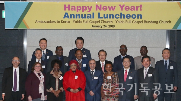기독교대한하나님의성회(여의도순복음) 총회(총회장:이영훈)는 지난 1월 24일 서울 콘래드 호텔에서 주한대사들을 초청해 오찬을 갖고, 평창올림픽의 성공적인 개최와 남북 평화통일을 위해 기도했다.