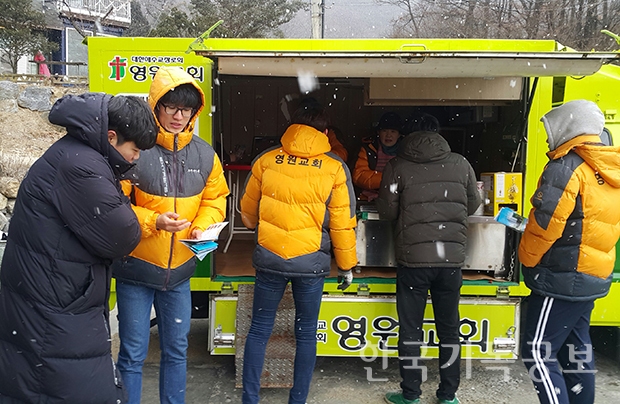 경기도 용인에 위치한 영원교회(하학수 목사 시무ㆍ사진)를 찾아가기 위해선 반드시 통과해야 하는 작은 굴다리가 있다. 마치 또 다른 세상과 이어지듯 굴다리 너머의 지역은 외부에서는 어떤 모습인지 전혀 알 수 없을 정도로 고립되어 있다. 자동차 한 대가 겨우 들어설 수 있는 좁은 굴다리를 지나자 주택 몇 세대로 이뤄진 작은 마을이 나타나고 영원교회가 우뚝 솟아있다. '이렇게 외진 곳에 있는 교회를 사람들이 찾아올까?' 교회에 들어서자 가장 먼저 연두빛 전도차가 눈에 띈다. 공원이나 행사장에서 종종 볼 수 있는 푸드트럭이다. 영원교회는 이 푸드트럭 탑차로 마을 주민들을 찾아가 전도사역을 펼치는 것으로 유명하다. 그러나 전도차가 없던 4년 전에도 하학수 목사와 부인 신동란 씨는 횡단보도 앞, 공원 등 불빛이 있는 곳을 찾아 밤까지 전도활동에 매진했다.