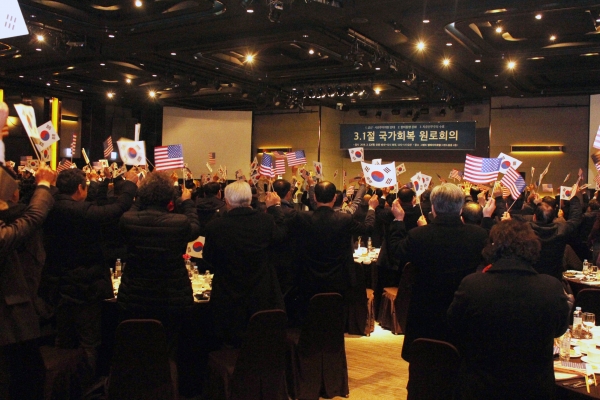 이어 김문수 전 경기도지사는 "국가 정체성을 회복하기 위해 태극기를 들어야 할 때다. 3.1절 범국민대회는 반드시 성공하게 될 것"이라며 "그러나 그 한 번의 성공만으로 끝나선 안 된다. 이를 상설화 해야 하고 서울뿐 아니라 각 지방까지 조직을 짜서 계속해 가야 한다"고 제안했다.