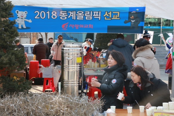 사랑의교회(담임 오정현 목사)가 강릉시기독교연합회와 함께 평창동계올림픽 개막일이었던 지난 2월 9일부터 올림픽이 열리는 강릉 올림픽파크 초입에 위치한 '소망장로교회'에서 선교활동을 펼치고 있다.