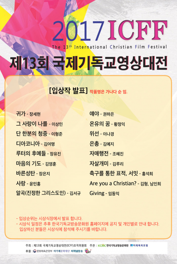 | 2017 제13회 국제기독교영상대전(ICFF) 입상작 발표 | |
