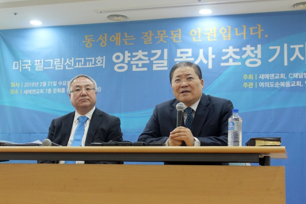 이어 "절대로 미국교회의 실수와 전철을 밟아서는 안 된다. 저는 미연방대법원에서 동성결혼법이 통과될 때 뉴욕의 어느 큰 교회에서 집회를 하고 있었다. 그런데 함께 동행한 기자들이 미국의 복음주의적인 교회들을 탐방해 보니까 단 한 교회도 동성결혼법 통과에 대한 우려를 표명하거나 반대하는 주보 광고나 설교를 한 교회가 없었다(고 한다)"고 했다.