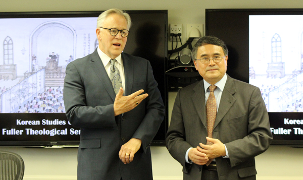 ▲마크 래버튼 풀러신학교 총장(왼쪽)과 김창환 코리안센터 초대원장 ⓒ미주 기독일보