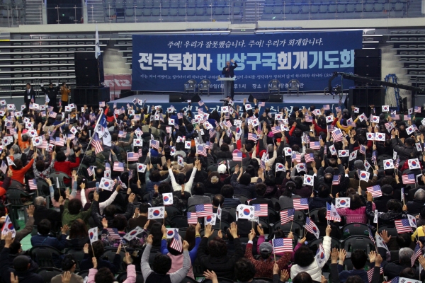 지난 3월 1일 서울 광화문 광장 일대에서 있었던 '3.1절 국가회복 범국민대회'의 연장선 상에서 기독교인들의 구국 정신을 일깨우고 회개를 촉구하는 '전국 목회자 비상구국 회개기도회'가 8일 서울 장충체육관에서 진행됐다.