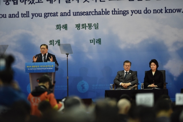 소 목사는 "그래서 대통령 주변에 있는 분들이 겉으로만 보면 소 목사를 오해할 수밖에 없는 국면에서 제가 대한민국 제50회 국가조찬기도회 설교자로 서게 된 것"이라며 "그러나 조찬기도회 전 환담장에서 대통령님을 뵈었을 때에 대통령님은 거기 있는 사람들 중에 저에게 가장 친숙한 표현을 하면서 '소 목사님 오랜만입니다. 오늘 설교가 기대가 됩니다"하며 덕담을 해 주셨고, 평창 동계올림픽에 대한 이야기를 서로 나누었다. 그래서 마음이 아주 편안해졌다"고 했다.