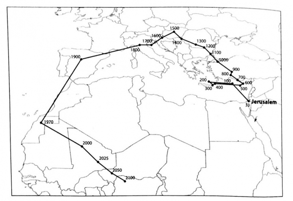 이렇게 시의적절한 전파가 없었다면 기독교 신앙은 시들어버렸을지도 모른다. 기독교의 발전은 연쇄적이었으며, 새로운 시대에 새로운 지역이 기독교의 종주국으로 등장했다(책 <기독교의 미래>)."