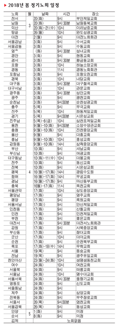 | 2018년 봄 정기노회, 3월 20일부터 개막 | |
