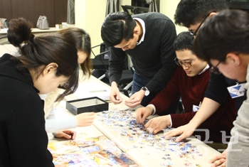 이후 강의는 이론 중심의 일방향적 전달이 아닌 실제 체험활동 위주로 진행됐다. 이날은 퍼즐 맞추기와 퀼트 조각 연결하기 등을 진행한 후, 김 교수는 "현대 경영학에선 퍼즐을 맞추는 것처럼 정해진 답에 도달하기 위해 데이터를 모으고 계획을 세우고 실행하는 것을 가르치지만, 빠르게 변화하는 오늘날엔 우선 행동하고 실패를 통해 배워나가야 한다"며, 기업가 정신을 설명했다.