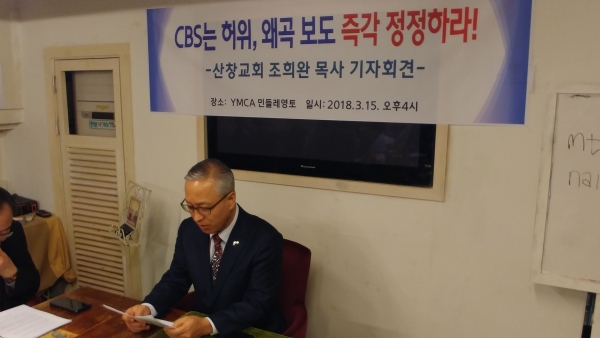 이어 "CBS가 이러한 명백한 법원 판결을 확인하고도 허위사실을 보도했다"며 "허위사실이 사실인 것처럼 방송을 한 부분을 인정하고, 조희완 목사와 산창교회에 사과할 것을 강력히 요구한다"고 했다.