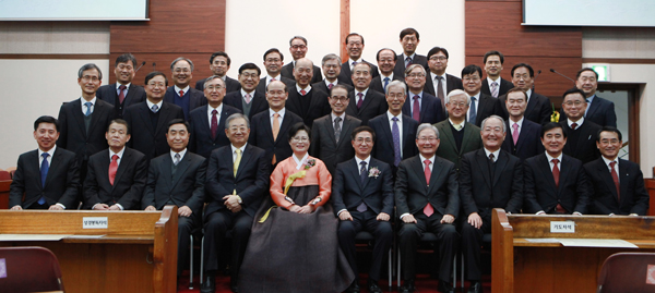 ▲ 지난 1월 위임예식을 마치고 한자리에 모인 이상학 목사 부부와 새문안교회 장로들.