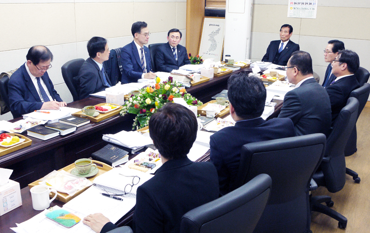 오는 9월 10~13일 열리는 대한예수교장로회 제103회 총회 장소가 익산노회 이리신광교회(장덕순 목사 시무)로 결정됐다. 호남지역에서 열리는 총회로는 총 다섯 번째이며, 1975년 광주제일교회에서 열린 제60회 총회 이후 43년 만이다. 호남지역에서는 제4회 총회(1915년) 전주 서문밖교회, 제25회 총회(1936년) 광주 양림교회, 제52회 총회(1967년) 전주 완산교회, 제60회 총회(1975년) 광주제일교회에서 열린 바 있다. 총회 임원회는 지난 3월 20일 대천중앙교회(최태순 목사 시무)에서 제102-7차 회의를 열고 제103회 총회 장소 유치를 청원한 이리신광교회에 대해 만장일치로 허락하는 한편, 최근 발생한 교회내에서의 폭력사태와 관련해 총회의 입장을 밝혔다. 최기학 총회장은 "최근 모교회에서 교회 내부의 문제로 용역을 동원하여 폭력적인 방법을 사용한 것은 유감스러운 사태"라고 지적하고, "어떤 경우에도 폭력은 정당화 될 수 없다"고 단정하며, "아직도 동원된 용역들이 있다면 즉시 퇴거해야 마땅하다"고 강조했다. 또한 최근 총회재판에 불만을 가진 사람들이 재판국원이나 국장을 지나치게 비판하고 언어폭력과 출입을 방해하는 일에 대해 우려를 표명하고, "이같은 일은 총회 질서와 재판을 무시하는 결과가 아닐 수 없다"며, "총회의 법과 원칙, 질서를 지켜주길 바란다"고 당부했다. 이날 임원회는 서울교회, 원주제일교회, 효성교회, 강북제일교회, 두레교회 등 분규가 일어나 갈등이 고조되고 있는 교회들을 중재하기 위해 화해조정위원회를 설치하기로 했으며, 지난 13일 재판,이후 사임서를 제출한 재판국장의 사임서는 반려했다. 회의에서는 화해조정위원회의 화해조정을 받지 않을 경우 벌칙조항이 필요하다는 의견도 제기됐다. 현재 헌법개정위원회는 지난 102회 총회서 수임된 '교회법에 불복하고 사회법으로 가는 자는 면직한다'는 조항에 대한 연구가 진행 중이다. 이단사이비대책위원회(위원장:황수석)이 제출한 '신천지 토론회 참여자 중 단순 참여자 2인은 재발방지 사과문 게재 권고, 토론회 주최의 혐의가 확인된 1인에 대해서는 소속노회가 책벌하도록 한 청원'을 허락했다. 한편 임원회는 최근 내려진 총회 재판국 판결과는 상충되는 총회 규칙부 해석에 대해 탄원서와 판결문을 첨부해 돌려보내며 재심의를 요청하기로 했다. 서울동남노회가 제출한 '헌의위원회의 임무와 노회장 승계에 대한 질의건'에 대해 규칙부(부장:안옥섭)가 내린 해석은 "접수된 헌의안을 수합, 분류하여 노회 개회 1개월 전에 본회에 이첩 및 헌의하면 된다'며, 헌의위원회의 임무를 심의기능이 없는 단순 분류, 이첩하는 것으로 해석했다. 이에 대해 임원회는 총회 헌의위원회도 사안에 따라 불법, 서류 미비 등의 사안을 검토해 반려, 이첩, 상정 등의 임무를 하고 있음에 대해 인지하고, "과거 서울동남노회가 노회규칙을 개정하며 헌의위원회에 '심의'기능을 추가규정한 특수성에 대해 설명한 탄원서를 무시할 수 없다"고 결론짓고 사안의 엄중함을 깨달아 재판국의 판결내용과 탄원서를 첨부해 규칙부에 재심의 요청하기로 의견을 모았다. 한편 4월 1일부터는 총회본부 문서수발 시스템이 전면 바뀔 예정이다. 임원회는 총회가 추진하고 있는 시스템 전산화 중 행정업무의 효율성을 높이기 위해 새 시스템으로 교체 완료하고, 총회 본부의 모든 문서처리 절차를 전자문서로 처리하도록 했다는 사무총장의 보고를 받고, 이에 따른 문서의 분류 기호 체계 교체 청원건을 허락했다. 기존 분류체계인 '예장총+회기+문서발생번호'에서 정부가 사용하는 방식인 '생산부서별+문서발생번호+발생일자(예:사무국-1(2018.3.31)'체계로 새롭게 바뀌게 된다. 또한 생산되는 모든 전자문서를 디지털 아카이브에 저장할 예정이다. [출처] 한국기독공보 이수진 기자 http://www.pckworld.com/news/articleView.html?idxno=76444