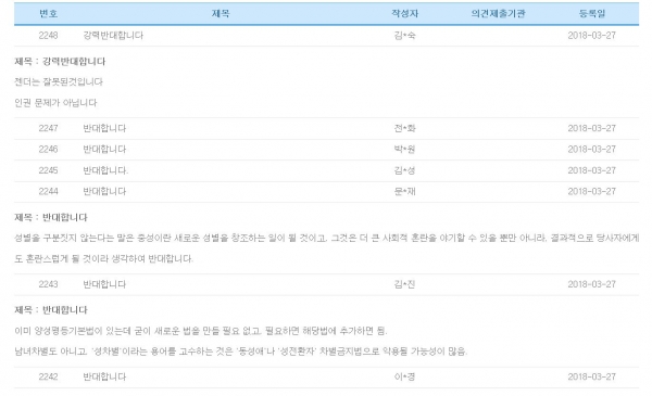 지난 15일부터 입법예고 중(29일까지)인 이 법률안은 "성차별·성희롱 방지 및 피해자 보호·지원"을 골자로 한다. "정당한 이유 없이 성별, 혼인여부, 가족 안에서의 지위, 임신, 출산, 용모 및 키·체중 등 신체적 조건을 이유로 우대하거나 분리·구별·제한·배제·거부하는 등 불리하게 대우하는 경우" 이를 '성차별'로 보고, 제재를 가할 수 있도록 했다. 문제는 여기서 말하는 '성별'이 과연 생물학적 구분인 남자와 여자만을 말하느냐, 그리고 '성차별'의 범위에 동성애도 포함되느냐 하는 점이다. 최근 동성애까지 차별금지 사유로 하는 소위 '차별금지법' 제정 시도가 여러 차례 있었던 것이 이런 우려를 낳고 있는 배경이다. 게다가 이 법률안이 △성차별·성희롱 피해자 또는 그 사실을 알고 있는 사람이나 단체는 국가인권위원회에 그 내용을 진정할 수 있다(안 제22조) △여성가족부장관의 요청이 있거나 이 법이 금지하는 성차별·성희롱 행위가 있다고 믿을 만한 상당한 근거가 있고 그 내용이 중대하다고 인정할 때에는 국가인권위원회가 이를 직권으로 조사할 수 있다(안 제23조)고 한 것도 이런 우려를 더욱 증폭시키고 있다. 이미 널리 알려져 있다시피 국가인권위원회법 제2조 3항이 '성적(性的) 지향'을 차별금지의 사유 중 하나로 명시하고 있기 때문이다. 현재 이 법률안이 예고된 국회 사이트(http://pal.assembly.go.kr/law/readView.do?lgsltpaId=PRC_A1Q8B0U3H1I3C1S7X5X6R5N0W3X1G4#a)에는 "동성애나 성전환자 차별금지법으로 악용될 가능성이 많다" "동성애 입법화 절대 반대한다" 등의 내용으로 반대 의견이 여러 건 달리고 있다. 이 법률안을 대표발의한 남인순 의원실의 한 보좌관은 27일 본지와의 통화에서 이 법률안이 언급하고 있는 '성별'은 헌법 제11조에 나오는 '성별'의 의미와 같다고 했다. 즉, 생물학적 구분인 남자와 여자만 뜻한다는 것이다. "동성애를 포함하는 것도 아니"라고 했다. 헌법 제11조 제1항은 "모든 국민은 법 앞에 평등하다. 누구든지 성별·종교 또는 사회적 신분에 의하여 정치적·경제적·사회적·문화적 생활의 모든 영역에 있어서 차별을 받지 아니한다"이다. 이 보좌관은 또 "국가인원위원회법은 (성적 지향을 포함해) 모두 19가지의 차별금지 사유를 나열하고 있지만 이 법률안은 그 중 (성적 지향은 포함하지 않는) 7개만을 대상으로 한다"고도 덧붙였다. 그러면서 "법률안 어디에도 동성애나 그것을 뜻하는 용어가 나오지 않는다. 많은 분들이 오해한 것 같다"고 했다. 그러나 양성평등기본법이 이미 존재하고, 또 '성별에 의한 차별·성희롱 금지 및 권리구제 등에 관한 법률안'이 현재는 비록 동성애 등을 포함하지 않다고 해도, 입법화 후 개정을 통해 동성애 차별금지법으로 변질될 여지가 있다는 지적이 나오고 있다.