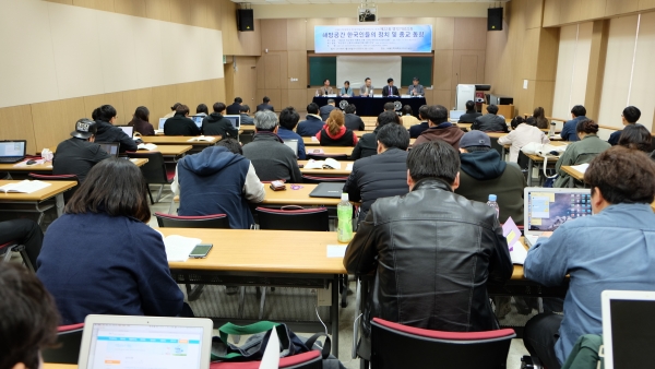 '1946년 미군정의 여론조사에 나타난 한국인의 정치성향'에 대해 발표한 박명수 교수는 "많은 학자들은 해방 후 한국사회가 좌파 내지 중도 세력이 우세했고,