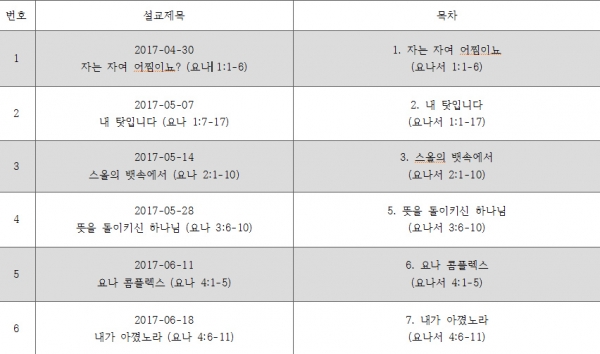 뱃속에서(욘 2:1-10)', '뜻을 돌이키신 하나님(욘 3:6-10)', '요나 콤플렉스(욘 4:1-5)', '내가 아꼈노라(욘 4:6-11)' 등 6차례 설교가 제목부터 본문 구성까지 이 원로목사의