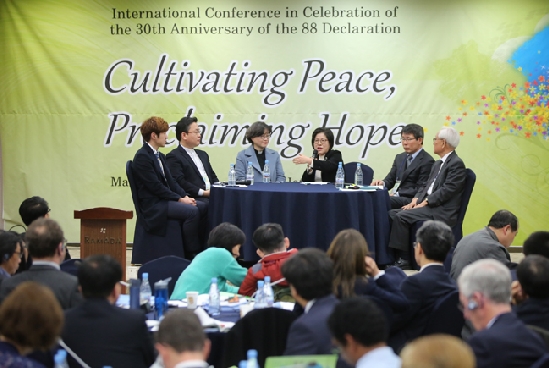 한국교회 88선언 30주년 기념 국제협의회 한국사회 통일 운동의 토대가 됐던 '민족의 통일과 평화에 관한 한국기독교회 선언(88선언)' 30주년을 맞이해 그동안의 통일 운동을 성찰하고 평화통일에 대한 신학적 비전을 재정립하기 위한 자리가 마련됐다. 한국기독교교회협의회(NCCK, 총무:이홍정) 화해통일위원회는 지난 5~7일 서울 동대문 라마다호텔에서 한국교회 88선언 30주년 기념 국제협의회를 개최했다. '평화를 심고 희망을 선포한다'를 주제로 열린 이번 국제협의회에서는 88선언 이후 30년간의 한국교회 통일 운동을 성찰하고, 평화통일에 대한 신학적 비전 재정립 및 중장기 전략과 실천 방안 등을 연구했다. 특별히 한국교회와 세계교회의 연대 강화를 통해 국가적, 지구적 차원에서 평화에 대한 신학적 비전을 제시한 토론 결과를 바탕으로 'Korea Peace Plan' 선언서를 채택했다. 주최 측은 "NCCK는 1985년부터 88년까지 통일에 대한 신학적 입장을 정리하기 위하여 다섯 차례의 신학협의회를 개최하는데 이 협의회들이 88선언의 기초를 놓는 중요한 계기가 되었다"며, "88선언은 민간에 의해 이룩된 최초의 통일선언으로 민간통일운동 뿐만 아니라 정부의 통일 정책에도 지대한 영향을 미쳤다"고 전했다. 세계교회협의회(WCC), 세계개혁교회연맹(WCRC), 아시아기독교협의회(CCA), 미국교회협의회(NCC), 국제 기독교구호기관 ACT를 비롯해 미국 대통령 종교자문위원 등 세계교회 관계자, NCCK 및 국내 교계 관계자 등 100여 명이 참석한 가운데 진행된 협의회는 국악으로 진행된 개회 예배를 시작으로 '88선언과 지금'을 슬로건으로 한 세대 간 대담, '한반도 평화통일을 향한 에큐메니칼 여정'을 주제로 한 WCC 올라프 픽세 트베이트 총무와 이홍정 총무의 강연, 정세현 전 통일부 장관의 '한반도의 영구적 평화체제를 향하여-평화와 통일을 향한 한반도 지정학' 제하의 주제강연, 패널토론 등으로 진행됐다.[출처] 한국기독공보 임성국 기자http://www.pckworld.com/news/articleView.html?idxno=76232 관리자 I 2018-03-05