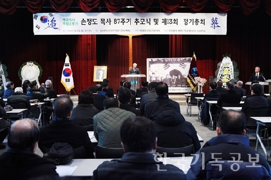 손정도 목사 87주기 추모식 개최손정도기념사업회 사단법인 손정도기념사업회(대표회장:전용재)가 지난 2월 12일 숭실대학교(총장:황준성) 한경직기념관에서 손정도 목사 87주기 추모식을 갖고, 손 목사의 신앙 발자취를 되새기는 시간을 가졌다. 추모식에서 대표회장 전용재 감독은 설교를 통해 "한 알의 밀알이 땅에 떨어져 많은 열매를 맺는 것처럼 손정도 목사님의 희생과 섬김의 법칙을 따라가자"고 전했다. 이어 김덕룡 민주평화통일자문회의 수석부의장은 추모사를 통해 "이 자리는 손정도 목사님의 독립운동의 길과 민족 사랑을 되새기기 위한 자리"라며, "손 목사님은 대한민국 임시 정부를 세우는데 혁혁한 공을 세우고 민족의식을 고취시켜 독립운동에 앞장섰다"고 말했다. 한편 숭실대는 지난 2월 9일 개최한 제90회 학위수여식에서 숭실대를 재학 중 항일민족운동에 참여해 졸업하지 못한 손석도 목사 등 5명의 평양 숭실 동문에게 명예졸업장을 수여했다. 이와 관련해 황준성 총장은 추모사를 통해 "손 목사님은 교단의 선교자이자 애국지사로 명예졸업장을 드리게 돼 기쁘다"며, "숭실대는 통일시대, 통일을 준비하는 대학으로 손 목사님의 나라사랑과 고귀한 정신을 계승할 것"이라고 밝혔다. 손정도 목사(1882~1931)는 1910년 평양 숭실전문학교를 수료하고 상하이 임시정부 의정원 의장을 지냈으며, 대학적십자회를 창립했다. 또한 의용단, 한국노병회, 흥사단에서 독립운동을 전개하고, 1962년 건국공로 훈장을 받았다.[출처] 한국기독공보 최샘찬 기자http://www.pckworld.com/news/articleView.html?idxno=76172 관리자 I 2018-02-26