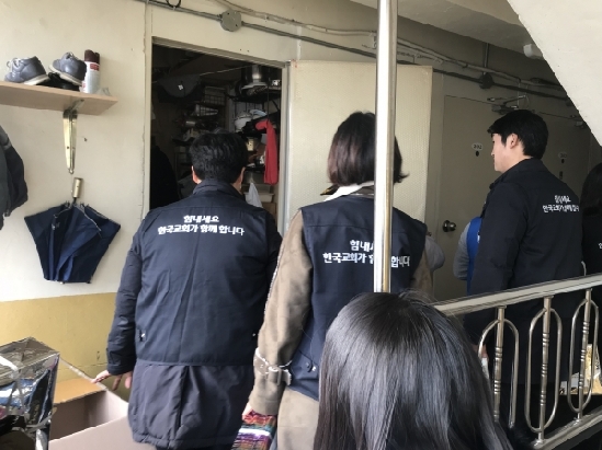한국교회봉사단 “다음 명절에도 쪽방촌 주민 섬기겠다”▲설명절을 맞아 나눔을 위해 서울 용산구 동자동에 위치한 쪽방촌을 찾았다. ⓒ한국교회봉사단 ▲설 명절을 맞아 나눔에 동참한 청년과 자원봉사자들. ⓒ한국교회봉사단 한국교회봉사단(한교봉)이