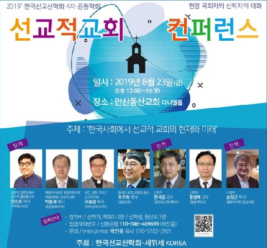 ‘선교적 교회 컨퍼런스’ 주제 한국선교신학회 4차 공동학회 한국 대표적 선교학회인 ‘한국선교신학회’ 4차 공동학회가 ‘세뛰세 Korea‘와 함께 ‘선교적 교회 컨퍼런스’로 오는 8월 23일 12시에 안산동산교회 다니엘홀에서 개최된다. 한국선교신학회 4차 공동학회는 교회의 새로운 도약을 기대하는 목회자와 신학자들뿐 아니라, 선교적 삶을 고민하는 모든 크리스천들을 위한 컨퍼런스로 진행된다. 컨퍼런스를 공동 주최하는 한국선교신학회는 전국 40여 기독 대학교 및 대학에 소속된 교수와 학생, 목회자와 선교사들이 모여 활동하고 있으며, 현장과 이론을 가장 조화롭게 연구하며 선교 실천에 전력을 다하고 있다. 세뛰세 KOREA는 ’세대를 뛰어넘는 세미나’의 줄임말로, 한국교회 특정 교단과 진영, 이념과 계파를 뛰어넘어 연합과 혁신을 기대하는 새로운 플랫폼이다. 컨퍼런스에서는 선교적 교회 목회를 하는 안민호 목사(커피교회), 박홍래 목사(밀알교회), 오동섭 목사(미와십자가 교회), 조주희 목사(성암교회) 등이 게스트로 함께한다.또 한국일 교수(장신대)와 황병배 교수(협성대)가 논찬한다. 세뛰세 KOREA 대표 송창근 목사(블루라이트 교회)는 진행을 맡았다. 한국선교신학회 회장 최동규 교수(서울신대)는 “이번 컨퍼런스를 통해 한국에서 일어나고 있는 ‘선교적 교회 운동’을 평가하고 미래 방향성을 제시하는 계기가 될 수 있을 것”이라며 “이번 공동학회에서 현실감 있는 선교적 교회 토론이 진행되길 바란다”고 기대했다. 최 교수는 “선교적 교회는 단순히 선교하는 교회가 아니라, 선교를 존재 목적으로 삼는 교회”라며 “요즘 한국교회에서 선교적 교회에 대한 관심이 높아졌는데, 사회에 대한 교회의 책임을 느끼는 목회자들이 많아지고 있기 때문”이라고 전했다. 현장과 이론의 조화를 꾀하는 이번 공동학회 컨퍼런스는 교회가 사회에 미쳐야 할 역할의 새로운 모습과 함께, 복음 전파를 위한 새로운 접촉 모델을 제시할 것으로 전망된다. 컨퍼런스 참가비는 목회자·신학자 2만원, 평신도·신학생 1만원이다. 접수: http://bitly.kr/DlyifS문의: 010-5102-2921 (한국선교신학회 박진웅) 출처 : http://www.christiantoday.co.kr/news/324369 크리스천투데이 이대웅기자 dwlee@chtoday.co.kr 관리자 I 2019-08-05