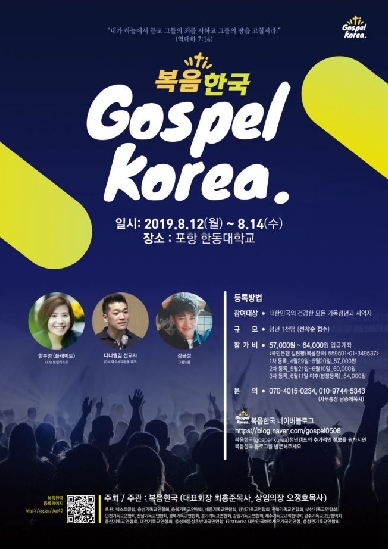 제1회 복음한국 청년 캠프, 한동대에서 8월 12~14일 개최콘서트, 영화 시사회, 선택 특강 등 다양한 프로그램 마련 복음한국(대표회장 최홍준 목사)이 오는 12일부터 14일까지 포항 한동대학교에서 ‘청년, 복음을 외쳐라’를 주제로 제1회 복음한국 청년 캠프를 개최한다. 복음한국은 “현재 한국 사회는 낙태 합법화, 동성애 합법화, 비혼의 증가, 출산율 최저 등의 여러 문제에 직면하고 있다”며 “이런 상황에서 한국 교회의 청년들을 이 시대의 빛과 소금의 역할을 감당할 예수 그리스도의 사람으로 세우고 올바른 세계관을 가진 청년들로 양육하기 위해 복음한국(Gospel Korea)을 창립했다”고 했다. 첫째 날에는 그룹 ‘노을’의 리더 강균성이 개회식을, 권성수 목사가 ‘성경적 세계관(기독교 세계관)’을 주제로 특강한다. 이후 조별 모임을 갖고 저녁 집회엔 다니엘 김 선교사가 강사로 나설 예정이다. 찬양에는 레위지파가 함께 한다. 둘째 날에는 ‘문화가 있는 강연’이라는 콘셉트로 영화 ‘언플랜드’ 압축 시사회를 갖고 한국 교회의 흐름과 역사, 국가관에 대한 주제의 강연을 갖는다. 또한 NaBaSeBa(나를 바꾸고 세상을 바꾸는 시간) 제목의 특강이 있다. 특별히 이날은 선택 특강으로 ‘동성애 차별금지법에 대한 대응’, ‘동성애의 파고에 맞선 하나님의 의병’, ‘동성애의 선천성’, ‘남성간 성행위자의 헌혈 제한’, ‘왜 나는 변하지 않을까’, ‘혼란 속 기독교인의 역할’, ‘탈동성애, 돌아가야 할 곳’, ‘교회와 인권’, ‘동성애, 젠더 담론 기독교인들은 어떻게 바라봐야 하는가’, ‘기독교생명윤리와 낙태’, ‘생명의 시작점과 종결점’, ‘기독교에서 본 이슬람’, ‘교육에서 하나님 경외하기’, ‘크리스찬의 성’, ‘영역주권, 교회, 시장 그리고 국가’, ‘인류 문명사를 위협하는 젠더 페미니즘과 그리스도인의 과제’, ‘창조와 복음’, ‘유엔의 인권법과 북한인권의 실태’, ‘일터에서 하나님 경외하기’, ‘기독교 세계관으로 미디어(영화 문화) 보기’ 총 20개 강의가 준비된다.강사로는 조영길 변호사, 염안섭 원장, 길원평 교수, 김지연 약사, 김영길 변호사, 박진권 선교사, 지영준 변호사, 한효관 대표, 이명진 소장, 이상원 교수, 이만석 목사, 김정효 교수, 김승욱 교수, 곽혜원 박사, 김광 교수, 이정훈 교수, 방선오 장로, 이영진 교수 등이 나선다. 셋째 날에는 에릭앤로교수(한동대)가 ‘자유민주주의’를 주제로 강의하며 Young NaBaSeBa(나를 바꾸고 세상을 바꾸는 시간) 제목의 특강과 스쿨러쉬(지역별 인사) 및 지역별 청년 모임을 갖는다. 낙태를 반대하는 영화 영화 ‘언플랜드’ 시사회를 가질 예정이다. 한편 복음한국은 대표회장으로 부산 호산나 교회 최홍준 원로 목사를 중심삼고, 오정호 목사 (대전새로남교회 담임)를 상임의장으로, 박진석 목사 (포항기쁨의교회 담임)를 상임부의장으로, 이재훈 목사 (서울온누리교회 담임), 고명진 목사 (수원중앙침례교회 담임), 박성규 목사 (부산부전교회 담임), 박경배 목사 (대전송촌교회 담임) 를 상임대표로, 대전제일장로교회 김철민 목사, 동반연 운영위원장 길원평 교수를 준비위원장으로 선임했다. 공동대표로는 정진모목사(충남기독교총연합회장), 음태봉목사(충북기독교총연합회장), 임공열목사(세종기독교총연합회장), 홍근성목사(경남기독교총연합회장), 박종철목사(전북기독교총연합회장), 서창수목사(부산기독교총연합회장), 황규호목사(인천기독교총연합회장), 이형만목사(전남기독교총연합회장), 이정우목사(경북기독교총연합회장), 최승균목사(경기기독교총연합회장), 김미열목사(강원기독교총연합회장), 남수은목사(제주기독교교회협의회장), 문희성목사(광주기독교교단협의회장), 김영동목사(울산기독교연합회장) 등이 선임됐다. 이밖에 발기 단체로 한국기독교생명윤리협회, 한국기독교학교연맹, 넥스트클럽, 한국기독교학교연합회, 한국교육자선교회, 동성애동성혼반대국민연합, 성산생명윤리연구소, 동성애동성혼합법화반대전국교수연합, 월드뷰, First Korea, 학교를품는교회모임, 전국대학교수선교연합회가 있다. 출처 : http://www.christiantoday.co.kr/news/324457 크리스천투데이 김신의기자 sukim@chtoday.co.kr 관리자 I 2019-08-07