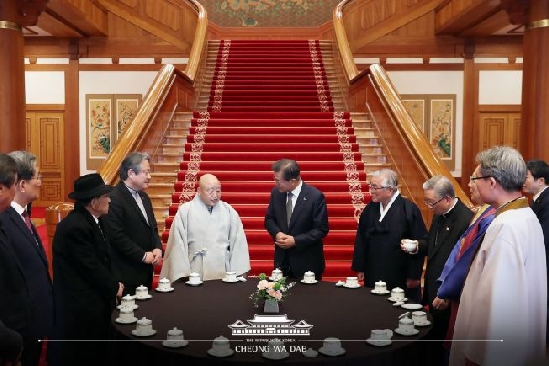 문재인 대통령, 이홍정 목사 등 종교 지도자들과 간담회 종교계가 국민통합에 역할 해 달라”SHAREMore ▲오찬 간담회가 진행되고 있다. ⓒ청와대문재인 대통령이 18일 오전 11시 55분부터 1시간 35분 간 청와대 본관에서 7대 종단 지도자들과 오찬 간담회를 가졌다고 청와대가 이날 밝혔다. 이에 따르면 이번 간담회는 3.1운동 100주년 기념사업을 추진하는 한국종교인평화회의(KCRP)에 참여하는 종단 수장을 초청해 이뤄졌다. 청와대는 "종교계가 주도적으로 참여했던 3.1운동의 의미를 함께 되새기는 자리였다"고 했다. 간담회에는 김희중 대주교(천주교 주교회의 의장), 원행 스님(조계종 총무원장), 이홍정 목사(한국기독교 교회협의회 총무), 오도철 교정원장(원불교), 이정희 교령(천도교), 박우균 회장(민족종교협의회), 김영근 성균관장(유교)이 참석했다. 청와대는 "간담회에 참석한 종교지도자들은 3.1운동 100주년을 맞아 이념과 종파를 넘어 민족이 하나가 되었던 3.1운동 정신을 계승·기념하고, 한반도 평화를 기원하는 자리로 만드는데 역할을 다하겠다는 의견을 전했다"고 했다. 또 청와대에 따르면 이홍정 NCCK 총무는 "이제는 남북 평화경제와 평화공존 시대로 가야한다"며 "이를 위해서도 국민통합과 남남갈등 해소가 중요하다"고 밝혔다. 문재인 대통령은 "이번 3·1절 맞아 종교계에서 3·1절 기념하는 법회, 미사, 예배 일제히 올리시기로 했고, 또 독립선언이 낭독된 3월 1일 정오를 기해 일제히 타종하기로 한 것 아주 감사드린다"며 "남북 교류에도 앞장서 주신 것에 대해서 감사를 드린다"고 했다고 청와대는 전했다. 또 문 대통령은 "정부와 정부 간의 공식적인 관계가 막혀있을 때 가장 먼저 교류의 분위기를 만들어낼 수 있는 데가 종교계를 비롯한 민간 교류 쪽"이라면서 "특히 종교는 다른 어느 분야보다도 서로 소통하고 교류하는 데에 수월한 측면이 있다고 생각하고, 또 그게 주는 상징적인 효과도 아주 크다고 생각한다"고 덧붙였다고 한다. 특히 국민통합과 관련해 문 대통령은 "국민통합이라는 게 정치가 해야 될 가장 기본적인 책무 같은 것인데 현실적으로 지금 잘 안 되고 있는 것이 사실"이라며 "종교계가 조금 더 역할을 해 주셔야겠다"고 당부했다고. 청와대는 "간담회에 참석한 7대 종단 지도자들은 3.1운동으로 희생된 선열을 기리기 위해 오는 3월 1일 정오에 교회와 성당, 사찰, 교당, 향교 등 각 종단별 종교시설에서 3분 간 타종 등을 진행하기로 했다"고 전했다. 한편, 이번 정부 들어 문재인 대통령과 종교계 지도자들이 만난 건 이번이 두 번째다. 첫 번째 만남은 지난 2017년 12월 6일 이뤄졌다. 이 때도 문 대통령은 KCRP 소속 7대 종단 지도자들을 만났었다. 당시 개신교에선 한국기독교총연합회(한기총) 대표회장 엄기호 목사와 NCCK 직전 총무인 김영주 목사가 참석했다. [출처] http://www.christiantoday.co.kr/news/320153 크리스찬투데이관리자 I 2019-02-19