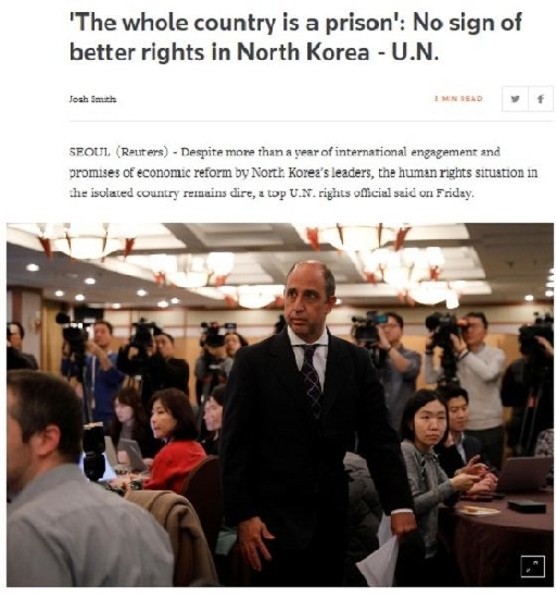 “북한은 전 국가가 감옥과 같다” UN북한인권특별보고관, 기자회견 열고 실태 밝혀 ▲토마스 오헤아 퀸타나 UN 북한인권특별보고관. ⓒ로이터통신 보도화면 캡쳐 “북한은 전 국가가 감옥과 같다.” 북한 인권 실태에 관한 정보를 수집하기 위해 7일 한국을 방문한 토마스 오헤아 퀸타나 UN 북한인권특별보고관이 11일 오후 서울 중구 프레스센터에서 기자회견을 열고 이같이 밝혔다. 기자회견에서 퀸타나 특별보고관은 “북한의 지도자 김정은은 경제 개발에 초점을 맞추고, 삶의 질 개선을 강조해왔다. 그러나 예비조사 연구에 따르면, 이같은 노력들이 대부분의 주민들의 삶의 질 개선으로 전환되지 않고 있음을 보여준다”면서 “사실, 지난 1년 동안 세계가 (북한의) 긍정적인 발전들을 지켜보았으나, 현장에서 인권에 대한 실상은 변함이 없으며 극도로 심각한 상태가 이어지고 있다는 것이 더욱 유감스럽다”고 말했다. 그는 “경제·사회적 누림, 건강, 주거, 교육, 사회 안전, 고용, 음식, 물, 위생 등 모든 분야에 있어서 북한 인구의 대다수가 사각지대에 놓여 있었다”고 지적했다. 북한은 인권 학대를 부인하며, 국제 사회가 북한을 고립시키기 위한 정치적 술책으로 인권 문제를 이용하고 있다고 주장한다. 또 지난 2004년부터 북한 인권 특별보고관의 방북을 허용하지 않고 있다. 이에 특별보고관은 한국 정부와 탈북자, 인권단체 등으로부터 정보를 수집해 오고 있다. 퀸타나 특별보고관은 작년 10월 23일 뉴욕의 유엔본부에서 가진 기자회견에서도 “한반도 안보와 평화, 번영에 대한 중요한 진전에도 불구하고 북한의 인권 상황은 변한 게 없다”고 지적했었다. 그동안 북핵 관련 남북, 미북간 정상회담이 열리는 등 대화의 분위기가 진전됐으나, 북한의 인권 문제는 눈에 띄게 다뤄지지 않았다. 그러다 작년 12월 10일 도널드 트럼프 미국 행정부는 심각한 인권 유린 혐의로 김정은의 최측근인 최룡해 북한 노동당 중앙위원회 부위원장과 정경택 국가보위상, 박광호 노동당 부위원장 겸 선전선동부장 등 3명에게 제재를 가했다. 다음날에는 북한을 종교자유 특별우려국으로 재지정했다. 이에 북한은 “이같은 제재는 전쟁 국면의 재개로 이어질 수 있으며, 북한의 비핵화는 영원히 차단될 수 있다”며 반발했다. 로이터 통신은 “퀸타나 특별보고관은 ‘국제 제재가 북한의 일반 주민들에게 피해를 주고 있는지 여부에 관해서는 구체적인 정보가 없다’면서 경제 전반을 상대로 한 제재가 주민들에게 미칠 수 있는 영향에 대해 의문을 제기했다”고 보도했다. 퀸타나 특별보고관은 “신년사에서 김정은이 생활수준 개선의 필요성을 언급하며 많은 북한 주민들이 겪고 있는 경제적·사회적 어려움을 인정했다. 그러나 UN은 수 천 명의 수감자들을 수용하고 있는 정치수용소들의 지속적인 사용을 확인하고 있다”면서 한 소식통을 인용해 “전 국가가 감옥이다”라고 지적했다. 또 “최근 북한을 떠난 목격자들이 광범위한 차별, 노동 착취, 일상 생활의 부패에 직면해 있는 것으로 알려지고 있으며, 중국으로 탈출한 탈북민들에 대한 지속적인 학대와 고문이 존재하고 있다“고 말했다. 이날 공개된 자료는 오는 3월 열리는 UN 인권위원회에도 제공될 예정이다. [출처] 크리스천투데이 http://www.christiantoday.co.kr/news/319248관리자 I 2019-01-12
