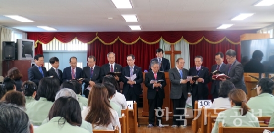 군경교정선교부 실행위원 '서울구치소' 위로방문 총회 군경교정선교부(부장:안현수, 총무:문장옥) 실행위원들이 지난 26일 서울구치소를 찾아 여성수용자들과 함께 예배를 드리며 위로와 갱생의 복음을 전했다.여성수용자 70여 명을 대상으로 한 이날 예배는 부장 안현수 목사의 인도로 열려 서기 김정호 목사가 설교하고 총무 문장옥 목사가 인사말을 전했으며, 참석자 중 결신의사를 밝힌 2명에게 세례를 베풀었다. 군경교정선교부는 서울구치소 전체 수용자 600명이 먹을 수 있는 간식을 전달했다.예배 후에는 안현수 목사의 초청으로 서울구치소를 찾은 기독연예인 윤형주 장로가 찬양 간증집회를 열어 수용자들과 신앙고백을 나눴다.안현수 목사는 "군경교정선교부에서 매월 수시로 전국 교도소를 현장 방문 진행중인데, 교정선교가 더욱 활성화될 수 있도록 전국교회에 기도를 요청드린다"고 말했다.한편 이날 서울구치소 내 교정협의회 사무실에서 제102-5차 실행위원회를 열고 선교현장 지원과 부서 예산 추경 및 전용의 건을 논의했다.군선교 지원으로 군인교회 4곳에 군인성경책 1박스(35권)씩을 지원하기로 하고, 제5포병여단 828대대 환희교회 공사 지원 요청도 수락했다. [출처] 한국기독공보 신동하 기자http://www.pckworld.com/news/articleView.html?idxno=76513 관리자 I 2018-03-29