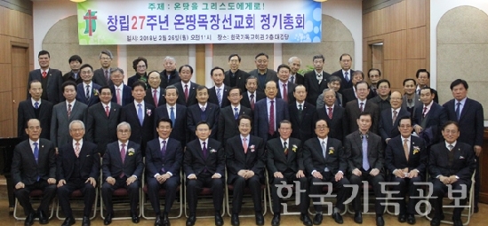 "온땅이 주님의 목장"온땅목장선교회 제27회 총회, 회장에 최내화 장로 창립 27주년을 맞은 온땅목장선교회가 지난 2월 26일 한국기독교회관 대강당에서 제27회 정기총회를 개최하고, 신임회장에 최내화 장로(충신교회)를 추대했다.이날 최내화 장로의 인도로 시작된 개회예배는 부총회장 이현범 장로의 기도, 김우철 목사의 성경봉독, 한국장로성가단 HIM중창단의 찬양, 부총회장 림형석 목사의 설교, 김의식 목사와 이창연 장로의 '국가와 민족', '국내외 선교'를 위한 특별기도, 이재관 장로의 헌금기도, 증경총회장 채영남 목사의 축도 순으로 진행됐다.이날 '주여, 부흥케 하소서' 제하의 설교를 한 림형석 목사는 "바알신앙이 팽배해진 시대에 예배가 약해지고 봉사활동도 약해지고 있다"며 "한국교회의 영적 생활이 회복될 수 있도록 거룩한 교회가 민족의 동반자가 되어야 선교에도 매진해야 한다"고 격려했다. 이어진 순서에서는 회장 최영업 목사가 환영사를, 유한귀 목사가 격려사, 홍성언 장로가 축사를 했다. 신임회장 최내화 장로는 "많이 부족하지만 부족한 부분을 전회장, 회원들, 회원교회 모든 분들의 사랑과 지도를 받으며 잘 감당하겠다"며 "회원들을 잘 섬기고 돌보며 살피는 것이 제 임무이다. 동시에 파송 선교사들의 역량을 키워나가기 위해 재정 지원을 비롯해 관심과 사랑을 보여주도록 노력하겠다"고 소감을 밝혔다.온땅목장선교회는 재경 호남출신 목사 및 장로들이 주축이 되어 운영되는 선교회로, 7년 전 목사장로협의회, 재경호남목사회, 호신회, 온땅선교회 등 4개 단체가 통합해 '온땅을 목장으로 삼는다'는 목표 하에 '온땅목장선교회'라는 이름으로 재출범했다. 선교, 교육, 복지, 친교, 인재양성을 목적으로 설립된 온땅목장선교회는 1993년 볼리비아에 첫 선교사를 파송한 이래 현재 12개국에 22명의 선교사를 파송하고 있다.신임원 명단.▲회장:최내화 ▲수석부회장:정연수 <부>정우겸 외 9명 ▲총무:이정원 <부>류철배 ▲서기:김우철 <부>김성기 ▲회록서기:박동석 <부>임한섭 ▲회계:이석구 <부>이재관 ▲감사:이형규 전승남 [출처] 한국기독공보 표현모 기자http://www.pckworld.com/news/articleView.html?idxno=76392관리자 I 2018-03-21