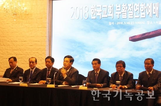 부활절연합예배- 4월1일 연세대 노천극장"부활, 인류의 희망!" ▲ 2018 한국교회 부활절 연합예배가 오는 4월 1일 연세대학교 노천극장에서 드려진다. 사진은 16일 기자회견. 주요 교단들이 함께하는 '2018 한국교회 부활절 연합예배'가 오는 4월 1일 오후 3시 연세대학교 노천극장에서 '나는 부활을 믿습니다!'를 주제로 드려진다. 표어는 '생명의 부활! 인류의 희망!'이며, 주제성구는 고린도전서 15장 12~19절로 정해졌다.준비위원회는 지난 16일 여의도 CCMM빌딩에서 기자회견을 열어 2주 앞으로 다가온 연합예배의 준비 상황을 공유했다. 올해 부활절 연합예배는 부활하신 예수 그리스도를 찬양하고 사회와 부활의 기쁨을 나누는 동시에, 부활신앙 회복과 변화된 삶을 다짐하는 자리로 마련되며, 축하-예배-기도-파송의 순서로 진행된다. 예배는 대한예수교장로회 총회장 최기학 목사(상현교회)의 사회로 열려, 예장(대신) 증경총회장 장종현 목사가 설교하며, △한반도의 통일 △한국교회의 회개와 성숙 △소외된 이웃들을 위한 특별기도가 이어질 예정이다. 또한 파송식에선 통일을 향한 한국교회의 염원을 담은 선언문도 발표될 예정이다. 준비위원회는 "오직 부활하신 예수 그리스도를 찬양하는 예배가 되도록 순서를 최소화했으며, 참석자들이 찬양, 기도에 전념할 수 있도록 준비했다"고 소개했다. 대회장을 맡은 이영훈 목사(여의도순복음교회)도 "부활의 영적 의미를 회복하고 분열된 한국교회를 하나로 묶어내는 부활절이 되기를 소망한다"며, 교회들의 기도를 요청했다. 이날 예배 헌금은 전례 대로 "미혼모, 이주민, 독거노인 등 소외된 이웃들을 돕는 데 사용될 예정이다. [출처] 한국기독공보 차유진 기자http://www.pckworld.com/news/articleView.html?idxno=76358관리자 I 2018-03-16