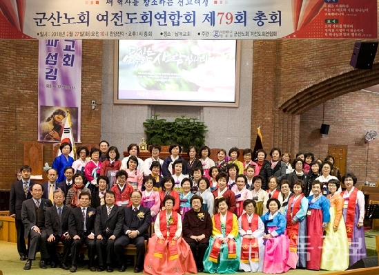 군산 여전도회 제79회 정기총회 개최【군산노회 연합회】 군산노회 여전도회연합회(회장:김문숙) 제79회 정기총회가 지난 2월 27일 군산 남부교회에서 개최됐다.이날 230여 명이 참석해 오전 10시 찬양잔치 예배 후 정기총회가 시작되어 각 부서와 지회 사업보고, 감사 및 세입ㆍ입세출 결산보고, 공천위원 인준, 신년도 사업계획안과 예산안이 심의됐다.또한 선교회원증 전달과 작은자 저금통 봉헌, 우수지회 시상 등이 마련됐다.한편 총회 전 찬양잔치는 개정, 동부, 군산신흥, 대야, 성원, 임피제일, 남부, 발산, 군산중부교회 등 9곳이 참여했다. [출처] 한국기독공보 http://www.pckworld.com/news/articleView.html?idxno=76340관리자 I 2018-03-14