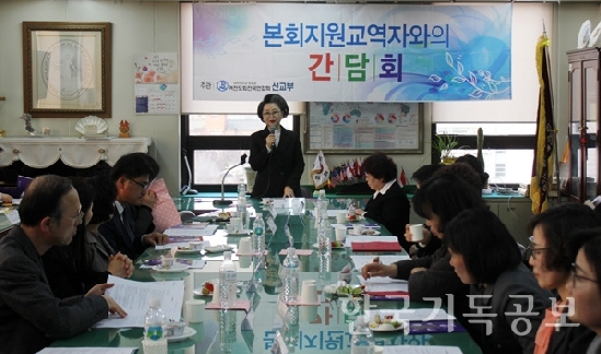 여전도회, 국내선교지 교역자 초청 간담회 여전도회전국연합회(회장:김순미)가 선교 지원 중인 국내 자립대상교회와 특수선교기관 교역자들을 13일 초청해 여전도회관 805호 회의실에서 간담회를 가졌다.이날 간담회에는 교역자 17명이 참석해 각자의 현장사역을 소개하고, "때마다 여전도회가 도와주고 사역을 지지해 준 것에 감사한 마음을 전한다"고 인사했다.전국 각지에서 찾아온 교역자들로부터 사역 현황과 중장기 계획, 기도제목을 들은 여전도회전국연합회 임원진은 지속적인 기도와 협력을 약속했다.여전도회전국연합회 회장 김순미 장로는 "어려운 환경여건 속에서도 목양일념에 여념이 없는 목사님들과 여전도회가 함께 하나님의 영광을 높이며 협력하여 복음의 열매를 풍성하게 맺을 수 있기를 기도한다"며 "올해는 특별히 여전도회전국연합회 창립 90주년인데, 여전도회 회원들이 더욱 성령충만하고 선교열정을 더해갈 수 있도록 노력하고 있다. 목사님들도 여전도회를 위해 기도해 주시기를 부탁드린다"고 말했다.여전도회전국연합회는 2년마다 본회 지원 교역자와의 간담회를 개최하고 있다. 올해 제15회를 맞았다. [출처] 한국기독공보 신동하 기자http://www.pckworld.com/news/articleView.html?idxno=76341 관리자 I 2018-03-14