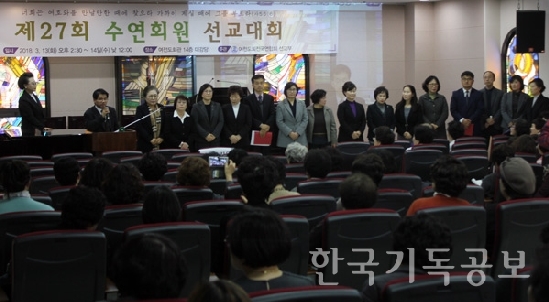60세 이상 여전도회원 '수연회원' 제27회 선교대회 60세가 넘은 여전도회원을 말하는 '수연회원'의 선교대회가 제27회를 맞아 13~14일 여전도회관 14층 강당에서 개최됐다. '너희는 여호와를 만날 만한 때에 찾으라 가까이 계실 때에 그를 부르라 (사 55:6)'를 주제로 한 선교대회는 140여 명이 참석한 가운데 개막했다. 수연회원 선교대회는 60세 이상 여전도회원에게 평생토록 선교여성의 긍지를 갖게 하여 자녀와 후배에게 여전도회 정신을 계승케하고 농어촌 선교활동에 이바지하는 목적을 두고 진행된다.개회예배에서 설교를 한 윤마태 목사(천안서부교회)는 "대한민국과 한국교회의 미래는 어둡다. 원인을 찾고 대안을 제시하고 실행해야 때라고 본다"고 문제를 제기하며 "종교개혁의 정신인 '말씀으로 돌아가서' 오늘의 위기를 극복할 대안을 찾아야 한다"고 강조했다.또한 윤 목사는 "교회 안팎으로 위기 요소들이 즐비하다. 내부적으로는 물질주의와 쾌락주의, 외부적으로는 이단들의 도전과 동성애의 합법화 등 모든 도전 앞에 교회는 연합하여 지혜롭게 대비해야 한다"며 "말씀순종, 생명살림, 가정회복 등이 필요하며 신앙전승에 성공해야 한다"고 덧붙였다.여전도회전국연합회 회장 김순미 장로는 인사말을 통해 "60세 수연에 이르도록 우리의 인생을 지켜주시고 보호하시고 인도하여 주신 선한목자 되시는 하나님께 감사를 드리며, 남은 삶도 하나님이 기뻐하시는 일에 귀하게 쓰임받는 여러분 모두가 되시기를 기원한다"고 격려했다.예배에 이어 수연회원들은 여전도회의 전반적인 사업을 청취하는 시간을 갖고, 계속해서 선교, 교육, 봉사에 매진하며 자긍심을 가질 것을 다짐했다.첫날 저녁부터 둘째날 오전까지는 다양한 특강이 이어졌다. 제1특강을 맡은 박주형 관장(강남시니어클럽)은 '시니어세대의 사회참여 의미와 역할'에 대해 설명했다 박 관장은 노인인구의 양적 변화와 65세 이상 노인빈곤율을 통계로 알리면서, 노인 사회참여의 의미와 역할을 강조했다. 노인사회 참여는 개인적으로는 노년기의 소외감을 보완하며 건강을 유지하고, 사회적으로는 노인들에게 일자리를 제공함으로서 사회통합 강화를 가져올 수 있다고 전했다.제2특강을 한 박흥순 목사(다문화평화교육연구소 소장)는 다문화사회에서 지역사회 협력과 연대에 대한 정보를 제공했다.박 목사는 "이주민과 선주민의 평화로운 공존은 각자가 자신 스스로를 돌아보고 성찰하는 일에서 시작한다"며 "사람을 있는 그대로 존중하고 배려하는 사람들이 더불어 살아가는 세상은 문자 그대로 평화로운 공존을 실현하며 모두가 확대된 가족이 된다"고 강조했다.그러면서 박 목사는 "출신국가나 성별이나 피부색과 상관없이 모든 사람들을 연민의 마음으로 바라보고 존중하며, 공감의 마음으로 연대하고 실천해야 한다. 모든 사람과 연민과 공감의 마음으로 연대하게 될 때 세련되고 섬세한 관점을 갖게 되며 이것이 바로 다문화적 인식의 토대라고 볼 수 있다"고 전했다. [출처] 한국기독공보 신동하 기자http://www.pckworld.com/news/articleView.html?idxno=76342 관리자 I 2018-03-14