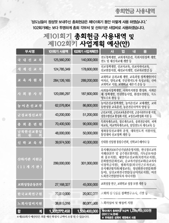 총회주일헌금 의무제, 희비 엇갈리는 노회재정부 총회헌금 의무제 및 부과상회비 제도 총회헌금 의무제 및 부과상회비 제도가 제100회 총회에서 결의돼 제101회기부터 시행됐다. 이에 따라 노회들은 세례교인 1인당 1000원을 기준으로 초과시 초과분의 50%를 노회 사업비로 지원받고, 미달시 부족분을 차기 회기 노회상회비에 합산해 부담해야 한다.지난 회기 납부한 총회헌금을 기준으로 26개의 노회는 기준 초과분의 50%인 총 5700여 만원을 지원받았다. 이와 반대로 기준 미달 40개의 노회는 첫 시행을 감안해 부족분의 50%인 1억 8200여 만원을 이번 회기에 상회비로 추가 납부하게됐다. 1개 노회는 기준액에 맞춰 납부했다.기준액을 초과해 지원을 받은 노회는 예산 외 수입이 발생해 노회 경상비에 보태어 사용할 수 있는 반면, 기준액 미달 노회는 편성된 예산 외 지출 발생으로 납부가 녹록지 않을 것으로 보인다.총회 차원에선 총회 헌금에 대한 각 노회 참여율이 10~100%로 천차만별이기 때문에 상회비를 인상하지 않고, 총회 헌금의 최소 기준을 설정한 것은 각각의 형평성을 고려한 것으로 보인다. 또한 총회헌금 의무제와 부과상회비 제도를 통해 개교회들이 총회 헌금에 적극적으로 참여할 수 있도록 노회들에게 독려를 요청하는 총회 차원의 메시지로도 해석된다. # 노회 임원들이 독려, 어려운 교회에 지원서울서노회는 총회 헌금에 모든 교회가 참여해 참여율 100%를 기록하며 740여 만원의 지원을 받았다. 서울서노회 회계 박만길 장로는 "노회 내부에서는 총회에 속한 노회인 만큼 솔선수범하자는 의식이 노회원들의 의식에 깔려 있으며, 노회 임원 등이 납부한 개교회에 문자 전화 인사 등 감사를 꾸준히 표현하면서 참여를 늘 독려해왔다"고 말했다. 이어 받은 지원액에 대해 박 장로는 "노회 수입이 사실 교회 상회비 뿐인 상황에서 부수적인 수입이 생겨, 교회성장운동본부를 통한 자립대상교회 지원을 더욱 확대했으며 또 한 목사의 부인이 암수술하는데 치료비를 지원하는데도 사용했다"고 밝혔다.또한 총회헌금에 91%의 교회가 참여해 570여 만원을 지원받은 경안노회 회계 김석윤 장로는 높은 참여율을 보이게된 배경에 대해 "노회 임원들이 각 시찰별로 협조를 당부하고 교회 형편에 맞게 납부를 요청하며 전화를 하고 만날 때마다 이야기를 하는 등 많은 노력을 기울였다"고 전하며, "받은 지원금은 총회창립100주년기념관의 건축헌금으로 사용될 것으로 보인다"고 말했다. # 헌금은 자발적으로, 이중 상회비총회헌금이 상회비에 부과된 것에 대해 반발하는 노회들도 있다.총회헌금의 개교회 참여율 24%로 780여 만원이 노회 상회비에 부과된 서울서남노회 재정부장 김상기 장로는 "예산이 편성돼 있지 않아 재정부에선 현재 노회상회비를 해결할 방안이 없다. 납부가 불가능하다"고 말했다. 이어 그는 "사실 총회 총대가 있는 교회는 총회 헌금에 대해 알고 있지만, 그렇지 않은 대다수의 교회는 '총회 주일' 자체에도 무관심하다"면서 "일각에선 상회비의 명목만 다를 뿐 이중적으로 납세 의무를 부과시키는 것이 아니냐는 말도 있으며, 무엇보다도 총회 차원에서 자발적으로 총회 헌금에 참여할 수 있는 분위기를 만드는 것이 중요하다"고 강조했다.또한 부과상회비가 부과된 한 노회의 회계 장로는 "헌금은 자발적으로 내는 것이고, 이로 인해 발생한 부과상회비는 납부가 힘든 것이 아니라 아예 낼 수가 없다"며, "노회는 총회의 지시대로 교회에 공문을 보내 작은 교회들은 많이 참여했지만, 대형 교회가 내지 않았기 때문에 부과됐다"고 불만을 토로한다. 이어 그는 "교회에서 헌금을 가지고 내는 것이 상회비인데, 상회비에 총회주일헌금을 부과해 또 내는 것은 부당하다"면서 "총회 관계 기관 등과 함께 논의해 나가야 할 과제"라고 덧붙였다. [출처] 한국기독공보 최샘찬 기자http://www.pckworld.com/news/articleView.html?idxno=76315관리자 I 2018-03-12
