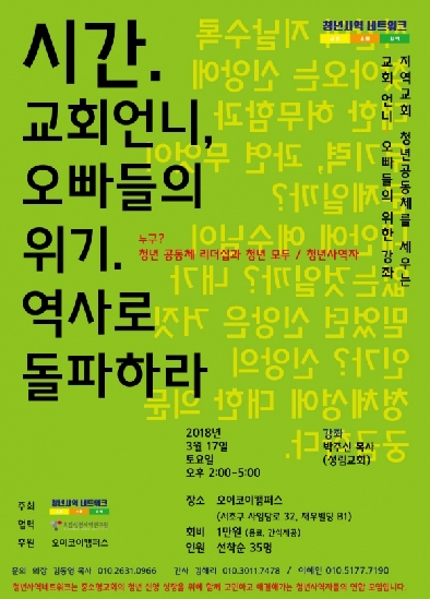 교회 언니, 오빠들의 위기- 역사로 돌파하라'는 주제로 오는 17일 오후 2-5시