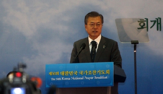 [전문] 문재인 대통령 대한민국 국가조찬기도회 축사 ▲문재인 대통령이 축사하고 있다. ⓒ김진영 기자
