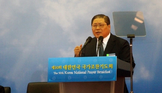 대한민국 국가조찬기도회 50주년을 맞이하여 먼저 하나님께 영광을 올려드립니다. 그리고 존경하는 문재인 대통령님을 모시고 조찬기도회를 갖게 된 것을 아주 뜻깊게 생각합니다. 특히 평창동계올림픽을 성공적으로 마치고 우리 땅에 평화의 기운이 드리우고 있는 때에 국가조찬기도회를 열게 된