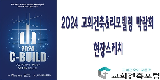 2024 C-BUILD 교회건축&리모델링 박람회 현장 스케치 2024 C-BUILD 교회건축&리모델링박람회 현장 스케치2024 C-BUILD 교회건축&리모델링 박람회가 09.04.(수) - 09.06(금) 3일간의 일정으로 양재 SETEC 제1전시장에서 개최되었습니다.박람회 사전등록 및 현장등록을 받는 접수처에서 박람회 사전 등록으로 박람회를 무료로 관람하거나 현장등록 결제 후 관람 할 수 있었습니다. 박람회 참가 업체 부스 사진입니다. 건축, 설계, 인테리어, 음향, 미디어, 교회 용품 등 다양한 업체에서 전시를 하였습니다.박람회장 내 다양한 주제와 강사진으로 교회건축 세미나가 진행되었습니다. 관리자 I 2024-09-10