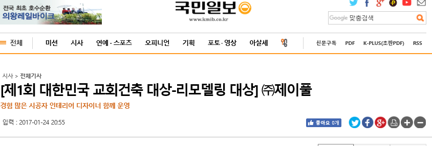 [출처] -(주)제이풀 홈페이지 회사소개, 인사말, 포트폴리오 등, http://jfull.co.kr/ -국민일보 기사, [제1회 대한민국 교회건축 대상-리모델링 대상] ㈜제이풀, http://news.kmib.co.kr/article/view.asp?arcid=0923683625&code=23111111&cp=nv -크리스천투데이 기사, 교회 예배당, 최소한 비용으로 실용적으로 건축하기, http://www.christiantoday.co.kr/news/306568 |